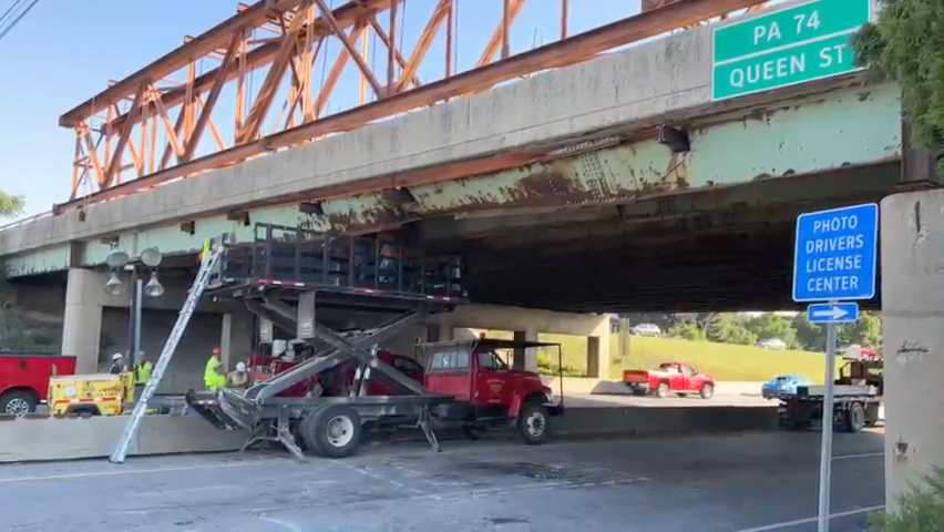 truck hits bridge today